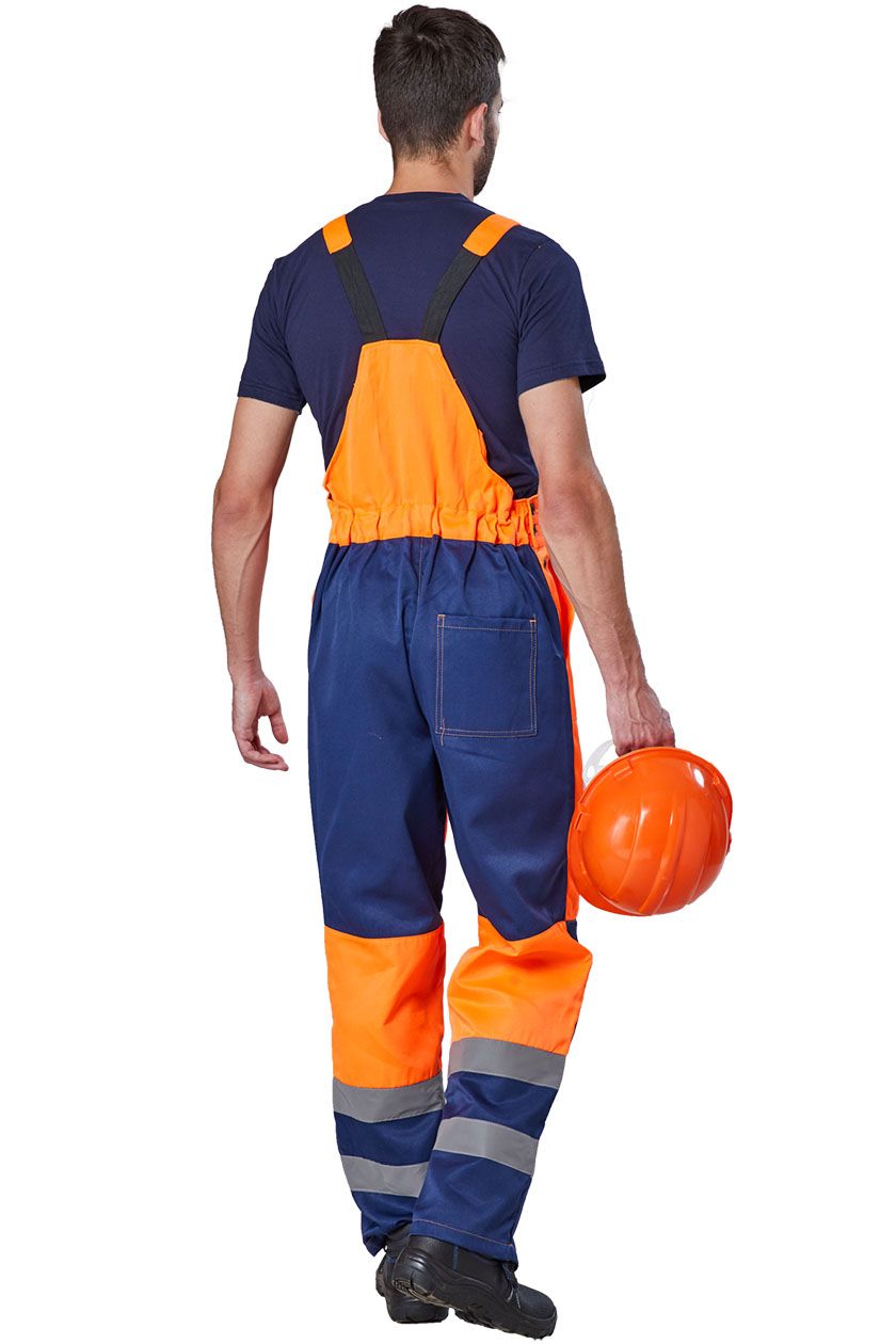➠ Полукомбинезон с притачной грудкой и спинкой, с застежкой гульфика на пуговицы, с застежкой в левом боковом шве на пуговицы. Два боковых накладных кармана. Наколенники. На правой задней половинке накладной кармана. На груде накладной карман с клапаном. Спинка стянута эластичной тесьмой. СОП 50 мм проходит вкруговую в два ряда по низу полукомбинезона.